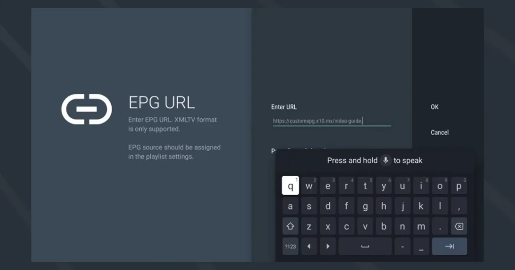 - Gå til Innstillinger → EPG URL og lim inn lenken til programguiden.