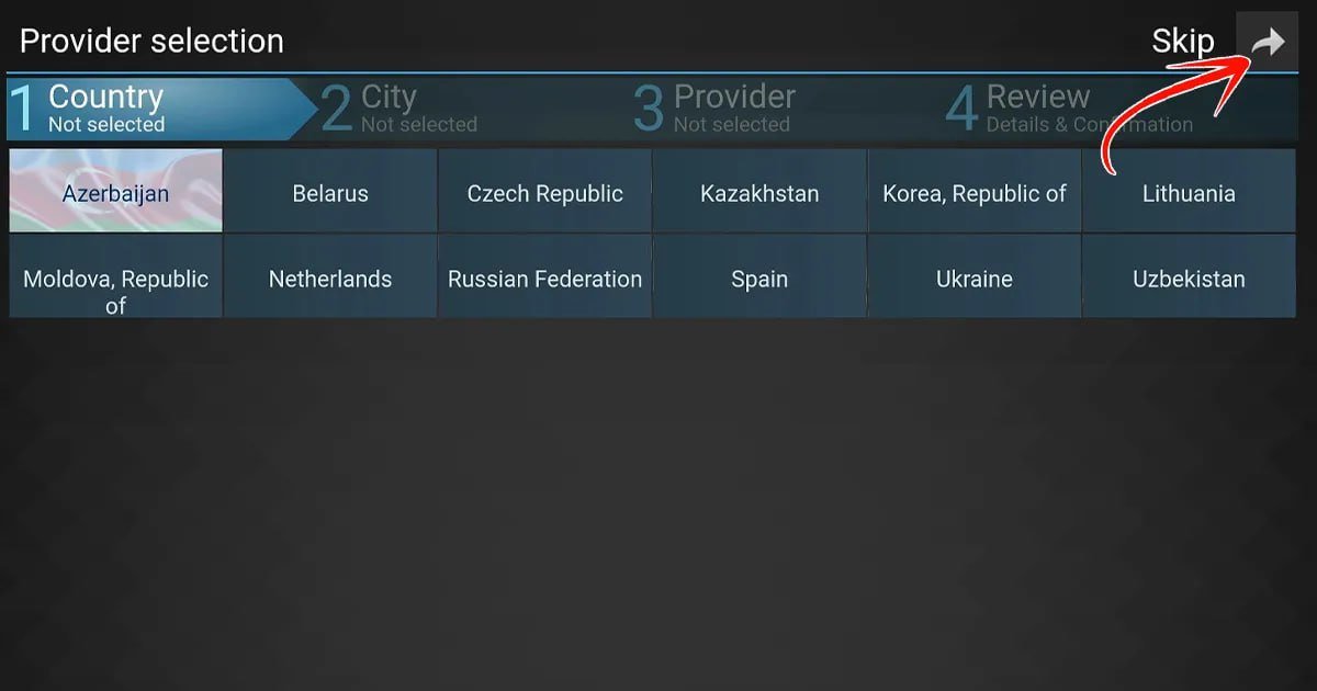 1. Installer appen: Åpne SS IPTV og klikk “SKIP”.