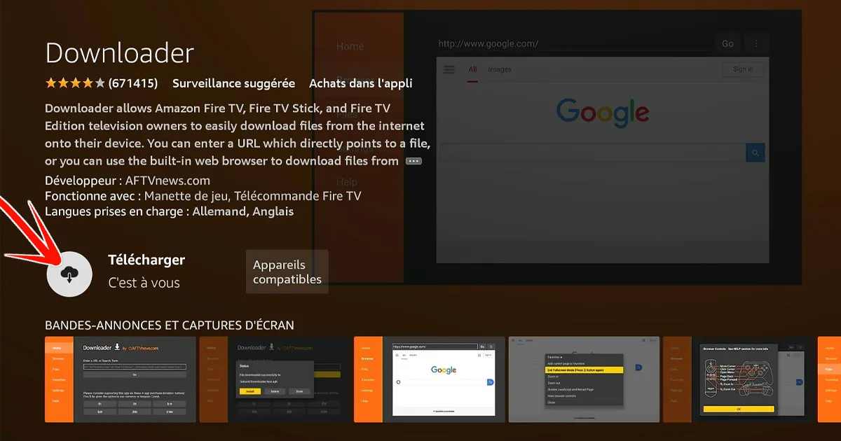 3- Klikk på “Last ned” eller “Hent” for å installere nedlastingsprogrammet på din Firestick.