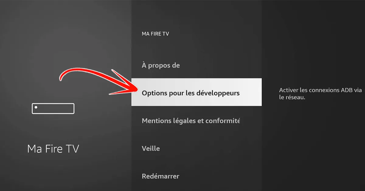 Klikk på fjernkontrollen én gang og velg “Utvikleralternativer”.
