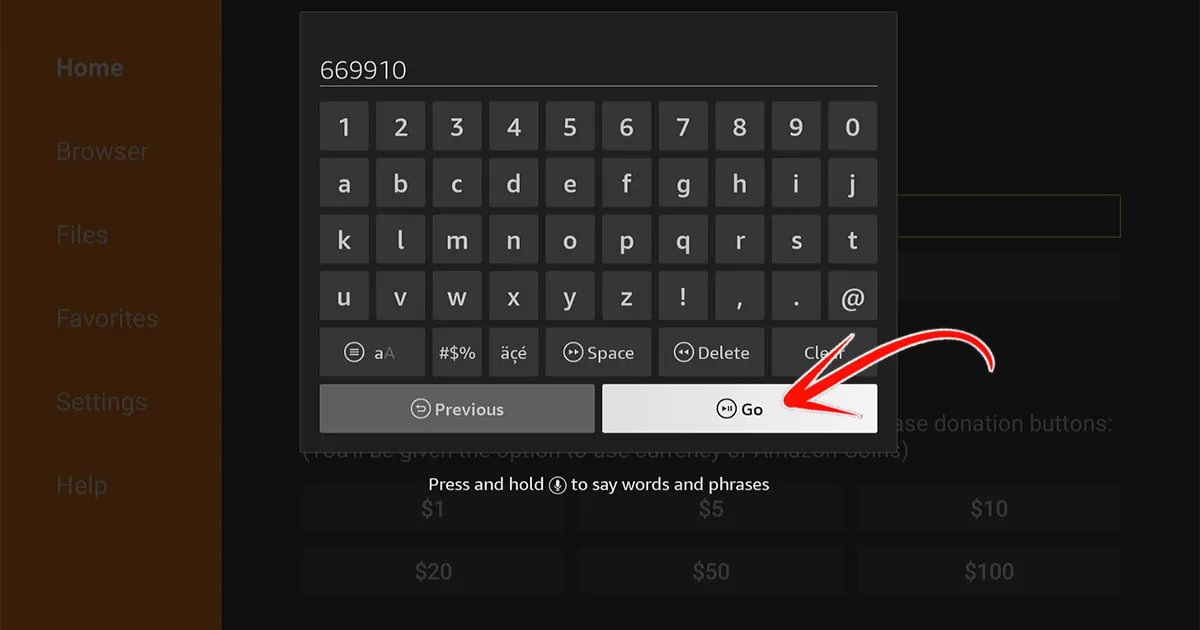Skriv inn koden 669910 og klikk “Go”. Nedlastingen av SS IPTV vil starte automatisk.