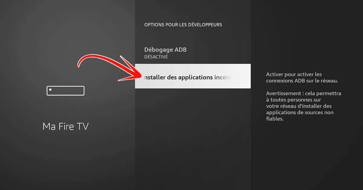Trykk “Fire TV Stick” syv ganger for å aktivere “Utvikleralternativer” (til det vises et varsel som informerer deg om at utvikleralternativene er aktivert).